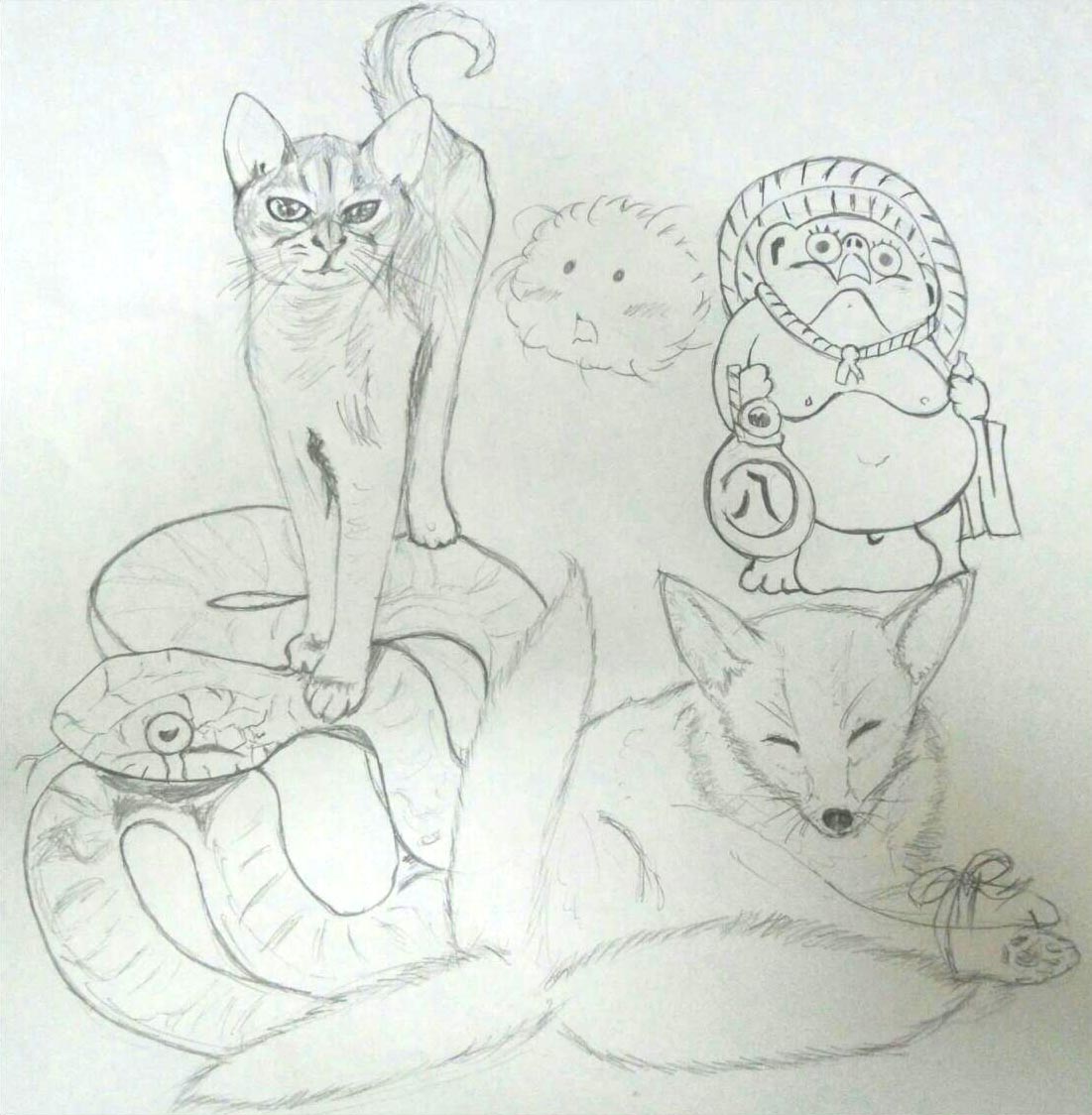 (; ・ω・)< 愉快な仲間様方の絵を描いたけど、特に狸様、怒っておられませんか……?