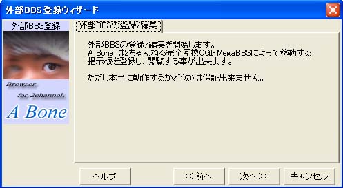 「外部BBSの登録/編集」ウィザードが出てきますので「次へ」をクリックして下さい。