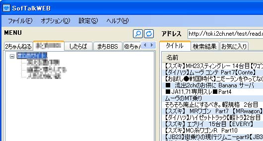板の情報が表示されます。板の追加や変更が有ると、更新ボタンをクリックすれば最新の内容に変わります。 レス書きスレ立ては普通にできます。 |