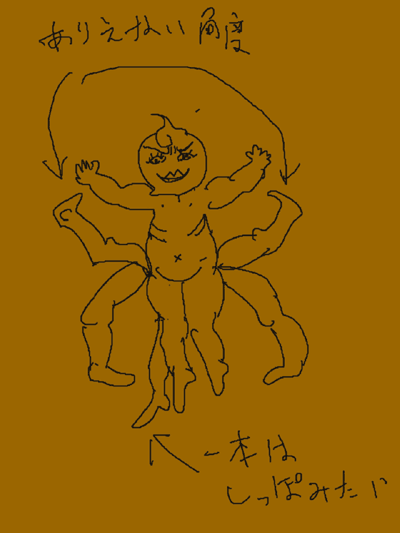 唐辛子が割れてなかから七本足のキューピー人形みたいな奴が出てきた。